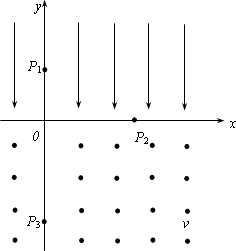 y>0的空間中存在勻強電場,場強沿y軸負(fù)方向;在y<0的空間中,存在勻強磁場,磁場方向垂直xy平面(紙面)向外.一電量為q、質(zhì)量為m的帶正電的運動粒子,經(jīng)過y軸上y=h處的點P1時速率為 V0,方向沿x軸正方向;然后,經(jīng)過x軸上x=2h處的P2點進(jìn)入磁場,并經(jīng)過y軸上y=-2h處的P3點.不計重力.求(l)電場強度的大。