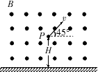 (2)若某時刻微粒運動到場中距地面高度為H的P點,速度與水平方向成45°,如圖所示.則該微粒至少須經(jīng)多長時間運動到距地面最高點?最高點距地面多高?