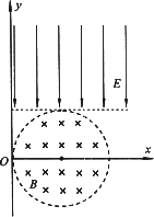 如圖所示,在x-o-y坐標(biāo)系中,以(r,0)為圓心、r為半徑的圓形區(qū)域內(nèi)存在勻強(qiáng)磁場,磁場的磁感應(yīng)強(qiáng)度大小為B,方向垂直于紙面向里.在y>r的足夠大的區(qū)域內(nèi),存在沿y軸負(fù)方向的勻強(qiáng)電場,場強(qiáng)大小為E.從O點(diǎn)以相同速率向不同方向發(fā)射質(zhì)子,質(zhì)子的運(yùn)動軌跡均在紙面內(nèi),且質(zhì)子在磁場中運(yùn)動的軌跡半徑也為r.已知質(zhì)子的電荷量為q,質(zhì)量為m,不計(jì)質(zhì)子所受重力及質(zhì)子間相互作用力的影響.