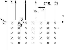 子(重力不計(jì))從電場(chǎng)中坐標(biāo)為(3L,L)的P點(diǎn)與x軸負(fù)方向相同的速度v0射入,在x軸上的Q點(diǎn)進(jìn)入磁場(chǎng),進(jìn)入磁場(chǎng)速度方向與x軸負(fù)方向成45°夾角,然后粒子恰好能從O點(diǎn)射出,求:粒子在O點(diǎn)的速度大。