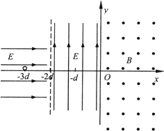 在xoy坐標(biāo)平面內(nèi)存在著如圖所示的有理想邊界的勻強(qiáng)電場(chǎng)和勻強(qiáng)磁場(chǎng),在x<-2d的區(qū)域內(nèi)勻強(qiáng)電場(chǎng)的場(chǎng)強(qiáng)為E、方向沿+x軸方向,在-2d<x<0的區(qū)域內(nèi)勻強(qiáng)電場(chǎng)的場(chǎng)強(qiáng)為E、方向沿+y軸方向,在x>0的區(qū)域內(nèi)勻強(qiáng)磁場(chǎng)的磁感應(yīng)強(qiáng)度的大小為