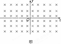 如圖甲所示,在xOy平面內(nèi)存在垂直平面的磁場(chǎng),磁感應(yīng)強(qiáng)度的變化規(guī)律如圖乙所示(規(guī)定向里為磁感應(yīng)強(qiáng)度的正方向),在t=0時(shí)刻由原點(diǎn)O發(fā)射初速度大小為v0,方向沿y軸正方向的帶負(fù)電粒子(不計(jì)重力).若粒子的比荷大小