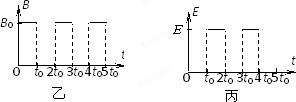 (3)若粒子的比荷變?yōu)?IMG style="vertical-align:middle" SRC="http://thumb.zyjl.cn/pic7/pages/61A2/2585/0018/c0ebdea2d6ae5048123cafde22543d1c/A/Image246.gif" width=66 height=45>,同時(shí)在y軸方向加勻強(qiáng)電場(chǎng),其電場(chǎng)強(qiáng)度的變化規(guī)律如圖丙所示(沿y軸正方向電場(chǎng)強(qiáng)度為正),要使帶電粒子能夠在運(yùn)動(dòng)一段時(shí)間后回到原點(diǎn),則E的取值應(yīng)為多少?