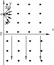 (3)速度方向與x軸正方向成30°角(如圖中所示)射入磁場(chǎng)的質(zhì)子,到達(dá)y軸時(shí)的位置坐標(biāo).