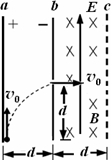 如圖所示,兩塊足夠大的平行金屬板a、b豎直放置,板間有場(chǎng)強(qiáng)為E的勻強(qiáng)電場(chǎng),兩板距離為d,今有一帶正電微粒從a板下邊緣以初速度v0豎直向上射入板間,當(dāng)它飛到b板時(shí),速度大小不變,而方向變?yōu)樗椒较颍覄偤脧母叨纫矠閐的狹縫穿過b板而進(jìn)入bc區(qū)域,bc區(qū)域的寬度也為d,所加電場(chǎng)大小為E,方向豎直向上,磁感應(yīng)強(qiáng)度