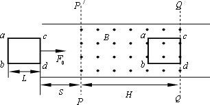 之間有一豎直向上的勻強(qiáng)磁場(chǎng),磁感應(yīng)強(qiáng)度為B,寬度為H,且H>L.線框在恒力F0作用下由靜止開始向磁場(chǎng)區(qū)域運(yùn)動(dòng),cd邊運(yùn)動(dòng)S后進(jìn)入磁場(chǎng),ab邊進(jìn)入磁場(chǎng)前某時(shí)刻,線框已經(jīng)達(dá)到平衡狀態(tài).當(dāng)cd邊到達(dá)Q