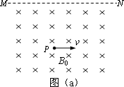 如圖(a)所示,垂直于紙面向里的有界勻強(qiáng)磁場(chǎng),MN是磁場(chǎng)的上邊界,磁場(chǎng)寬度足夠大,磁感應(yīng)強(qiáng)度B0=1×10-4 T.現(xiàn)有一比荷為
