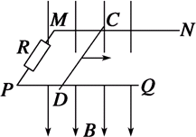 如圖所示,光滑的平行金屬導(dǎo)軌水平放置,電阻不計,導(dǎo)軌間距為l,左側(cè)接一阻值為R的電阻,空間有豎直向下的磁感應(yīng)強度為B的勻強磁場,質(zhì)量為m,電阻為r的導(dǎo)體棒CD垂直于導(dǎo)軌放置,并接觸良好.棒CD在平行于MN向右的水平拉力作用下由靜止開始做加速度為a的勻加速直線運動.求