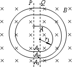 如圖所示,相距為d的狹縫P、Q間存在著方向始終與P、Q平面垂直、電場強度大小為E的勻強電場,且電場的方向按一定規(guī)律分時段變化.狹縫兩側(cè)均有磁感強度大小為B、方向垂直紙面向里的勻強磁場,且磁場區(qū)域足夠大.某時刻從P平面處由靜止釋放一個質(zhì)量為m、帶電荷為q的帶負電粒子(不計重力),粒子被加速后由A點進入Q平面右側(cè)磁場區(qū),以半徑r1做圓運動,此時電場的方向已經(jīng)反向,當(dāng)粒子由A1點自右向左通過Q平面后,使粒子再次被加速進入P平面左側(cè)磁場區(qū)做圓運動,此時電場又已經(jīng)反向,粒子經(jīng)半個圓周后通過P平面進入PQ狹縫又被加速,…….以后粒子每次通過PQ間都被加速.設(shè)粒子自右向左穿過Q平面的位置分別是A1、A2、A3、……An……,求: