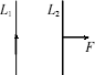 L1、L2為相互平行的兩根直導(dǎo)線,L1中通有如圖所示方向的電流,L2受到L1的作用力如圖中箭頭所示,請(qǐng)標(biāo)出L2中電流的方向.查看答案和解析>>