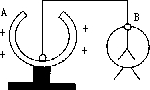 如圖所示,當(dāng)帶正電的絕緣空腔導(dǎo)體A的內(nèi)部通過導(dǎo)線與驗電器的小球B連接時,問驗電器是否帶電?