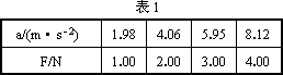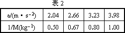 在探究牛頓第二定律的實(shí)驗(yàn)中,得到以下數(shù)據(jù):物質(zhì)質(zhì)量不變時(shí),加速度a與物體所受合力F的對(duì)應(yīng)數(shù)據(jù)如表1;物體所受合力不變時(shí),加速度a和物體質(zhì)量的倒數(shù)1/M的對(duì)應(yīng)數(shù)據(jù)如表2.