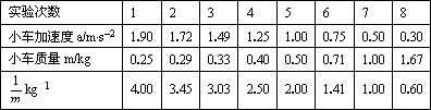 (2)保持砂和砂桶質(zhì)量不變,改變小車(chē)質(zhì)量m,分別得到小車(chē)加速度a與質(zhì)量m及對(duì)應(yīng)的1/m,數(shù)據(jù)如下表: