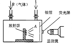 1919年盧瑟福通過(guò)如圖所示的實(shí)驗(yàn)裝置,第一次完成了原子核的人工轉(zhuǎn)變,并由此發(fā)現(xiàn)________.圖中A為放射源發(fā)出的________粒子,B為________氣.完成該實(shí)驗(yàn)的下列核反應(yīng)方程________+________→17O+________.