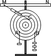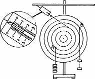 用下圖所示裝置做“研究有固定轉(zhuǎn)動軸物體平衡條件”的實驗,力矩盤上各同心圓的間距相等.