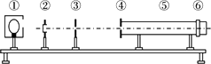 如圖所示,在“用雙縫干涉測光的波長”實驗中,光具座上放置的光學(xué)元件依次為①光源、②濾光片、③________、④________、⑤遮光筒、⑥光屏.對于某種單色光,為增加相鄰亮紋(暗紋)間的距離,可采取________或________的方法.