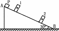 現(xiàn)利用圖所示裝置驗(yàn)證機(jī)械能守恒定律.圖中AB是固定的光滑斜面,斜面的傾角為30°,1和2是固定在斜面上適當(dāng)位置的兩個(gè)光電門(mén),與它們連接的光電計(jì)時(shí)器都沒(méi)有畫(huà)出.讓滑塊從斜面的頂端滑下,光電門(mén)1、2各自連接的光電計(jì)時(shí)器顯示的擋光時(shí)間分別為5.00×10-2 s、2.00×10-2 s.已知滑塊質(zhì)量為2.00 kg,滑塊沿斜面方向的寬度為5.00 cm,光電門(mén)1和2之間的距離為0.540 m,g=9.80 m/s2,取滑塊經(jīng)過(guò)光電門(mén)時(shí)的速度為其平均速度.