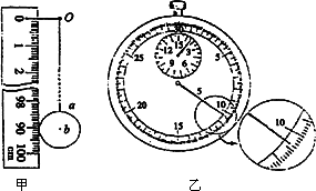 在一次用單擺測定重力加速度的實(shí)驗(yàn)中,圖(甲)的O點(diǎn)是擺線的懸掛點(diǎn),a、b點(diǎn)分別是球的上沿和球心,擺長L=________m.