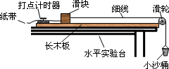 某探究學(xué)習(xí)小組的同學(xué)欲“探究恒力做功與滑塊動能變化的關(guān)系”,他們在實(shí)驗(yàn)室組裝了一套如圖所示的裝置,另外還有學(xué)生電源、導(dǎo)線、復(fù)寫紙、紙帶、小木塊、細(xì)沙、天平、刻度尺.當(dāng)滑塊連接上紙帶,用細(xì)線通過滑輪掛上空的小沙桶時(shí),釋放小桶,滑塊處于靜止?fàn)顟B(tài).若你是小組中的一位成員,要完成該項(xiàng)實(shí)驗(yàn),則: