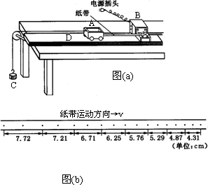 某同學(xué)設(shè)計(jì)了一個(gè)探究加速度與物體所受合力F及質(zhì)量m的關(guān)系實(shí)驗(yàn).如圖(a)為實(shí)驗(yàn)裝置簡圖,A為小車,B為打點(diǎn)計(jì)時(shí)器,C為裝有砂的砂桶,D為一端帶有定滑輪的長方形木板,實(shí)驗(yàn)中認(rèn)為細(xì)繩對小車?yán)等于砂和砂桶總重量,小車運(yùn)動加速度a可用紙帶上點(diǎn)求得: