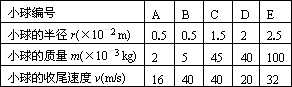 當(dāng)物體從高空下落時(shí),所受阻力會隨物體的速度增大而增大,因此下落一段距離后將勻速下落,這個(gè)速度稱為此物體下落的收尾速度.研究發(fā)現(xiàn),在相同環(huán)境條件下,球形物體的收尾速度僅與球的半徑和質(zhì)量有關(guān).下表是某次研究的實(shí)驗(yàn)數(shù)據(jù),g取10 m/s2.