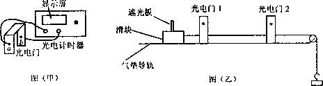 與打點計時器一樣,光電計時器也是一種研究物體運動情況是常用的計時儀器.如圖(甲)所示,a、b分別是光電門的激光發(fā)射和接收裝置.現(xiàn)利用如圖(乙)所示的裝置驗證“機(jī)械能守恒定律”.方法是:在滑塊上安裝一遮光板,把滑塊放在水平放置的氣墊導(dǎo)軌上,通過跨過定滑輪的細(xì)繩與鉤碼相連,連接好1、2兩個光電門.在圖示位置釋放滑塊后,光電計時器記錄下滑塊上的遮光板先后通過兩個光電門的時間分別為Δt1、Δt2.已知滑塊(含遮光板)質(zhì)量為M、鉤碼質(zhì)量為m、兩光電門間距為s、遮光板寬度為L(L遠(yuǎn)遠(yuǎn)小于s)、當(dāng)?shù)氐闹亓铀俣葹間.