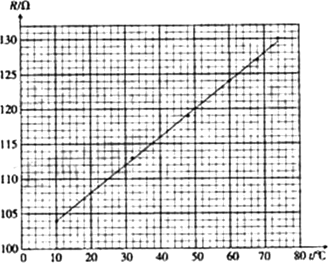 (3)實驗小組算得該熱敏電阻在不同溫度下的阻值,并據(jù)此繪得下圖的R-t關(guān)系圖線,請根據(jù)圖線寫出該熱敏電阻的R-t關(guān)系式:R=________+________t(Ω)(保留3位有效數(shù)字)