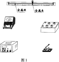 3 V的直流穩(wěn)壓電源、電流表、待測金屬絲、螺旋測微器(千分尺)、米尺、電阻箱、開關和導線等.(1)他們截取了一段金屬絲,拉直后固定在絕緣的米尺上,并在金屬絲上夾上一個小金屬夾,金屬夾可在金屬絲上移動.請根據(jù)現(xiàn)有器材,設計實驗電路,并連接電路實物圖1