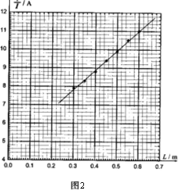 (3)該小級測得電流與金屬絲接入長度關系的數(shù)據(jù),并據(jù)此給出了圖2的關系圖線,其斜率為________ΔA-1·m-1(保留三位有效數(shù)字);圖線縱軸截距與電源動勢的乘積代表了________.的電阻之和.