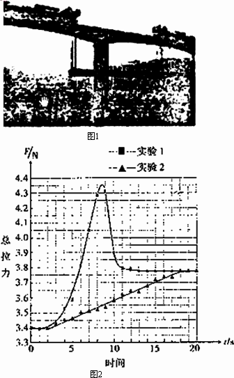 (如圖1),施工時采用了將鋼梁與水面成一定傾角出水的起吊方案,為了探究該方案的合理性,某研究性學(xué)習(xí)小組做了兩個模擬實驗.研究將鋼板從水下水平拉出(實驗1)和以一定傾角拉出(實驗2)的過程中總拉力的變化情況.①必要的實驗器材有:鋼板、細(xì)繩、水盆、水、支架、刻度尺、計時器和