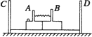 如圖所示,在實驗室用兩端帶有豎直擋板C和D的氣墊導軌和有固定擋板的質(zhì)量都是M的滑塊A和B做驗證動量守恒定律的實驗,實驗步驟如下:(1)把兩滑塊A和B緊貼在一起,在A上放質(zhì)量為m的祛碼,置于導軌上,用電動卡銷卡住A和B,在A和B的固定擋板間放入一彈簧,使彈簧處于水平方向上壓縮狀態(tài);(2)按下電鈕使電動卡銷放開,同時啟動兩個記錄兩滑塊運動時間的電子計時器,當A和B與擋板C和D碰撞同時,電子計時器自動停表,記下A至C運動時間t1,B至C運動時間t2;(3)重復幾次取tl和t2的平均值.