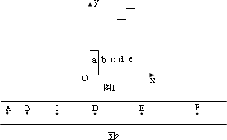 在“利用打點(diǎn)計(jì)時(shí)器測定勻加速直線運(yùn)動(dòng)加速度”的實(shí)驗(yàn)中,打點(diǎn)計(jì)時(shí)器接在50 Hz的低壓交變電源上.某同學(xué)在打出的紙帶上每5點(diǎn)取一個(gè)計(jì)數(shù)點(diǎn),共取了A、B、C、D、E、F六個(gè)計(jì)數(shù)點(diǎn)(每相鄰兩個(gè)計(jì)數(shù)點(diǎn)間的四個(gè)點(diǎn)未畫出).從每一個(gè)計(jì)數(shù)點(diǎn)處將紙帶剪開分成五段(分別為a、b、c、d、e段),將這五段紙帶由短到長緊靠但不重疊地粘在xoy坐標(biāo)系中,如圖所示,由此可以得到一條表示v-t關(guān)系的圖線,從而求出加速度的大。