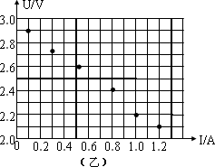 (2)圖(乙)中的6個(gè)點(diǎn)表示實(shí)驗(yàn)中測(cè)得的6組電流I、電壓U的值,按照這些實(shí)驗(yàn)值作出U-I圖線,由此圖線求得的電源電動(dòng)勢(shì)E=________v,內(nèi)電阻r=________Ω.(結(jié)果保留小數(shù)點(diǎn)后兩位數(shù)字)