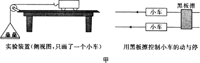 某實(shí)驗(yàn)小組用如圖甲所示的裝置來做“探究物體的加速度與力、質(zhì)量的關(guān)系”實(shí)驗(yàn).兩個(gè)相同的小車放在光滑的水平板上,前端各系一第細(xì)繩,繩的另一端跨過定滑輪各掛一個(gè)小盤,盤中可放砝碼.增減小盤中的砝碼就可以改變小受到的合力.兩個(gè)小車后端各系一條細(xì)線,用一個(gè)黑板擦把兩條細(xì)線同時(shí)按在桌子上,使小車靜止,抬起黑板擦,兩個(gè)小同時(shí)開始運(yùn)動(dòng),按下黑板擦,兩個(gè)小車同時(shí)停下來.