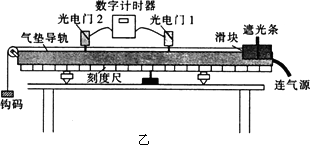 測(cè)出兩個(gè)光電門中心之間的距離s和遮光條的寬度d,將滑塊從圖乙所示位置由靜止釋放,由數(shù)字計(jì)時(shí)器可以讀出遮光條通過光電門1的時(shí)間△t1,遮光條通過光電門2的時(shí)間△t2,則滑塊的加速度的表達(dá)式a=________.