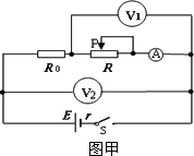 某同學(xué)到實(shí)驗(yàn)室做“測(cè)定電源電動(dòng)勢(shì)和內(nèi)阻”的實(shí)驗(yàn)時(shí),發(fā)現(xiàn)實(shí)驗(yàn)桌上還有一個(gè)定值電阻R0.他設(shè)計(jì)了如圖甲所示的電路來測(cè)量電源電動(dòng)勢(shì)E、內(nèi)阻r和R0的阻值.實(shí)驗(yàn)時(shí)用U1、U2、I分別表示電表V1、V2、A的讀數(shù),并將滑動(dòng)變阻器的滑片P移動(dòng)到不同位置時(shí),記錄了U1、U2、I的一系列值.