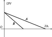 (1)他在同一坐標(biāo)紙上分別作出U1-I、U2-I圖線,如圖乙所示,則U1-I圖線是圖中________(填A(yù)或B)
