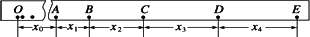 利用這個(gè)裝置也可以測量重錘下落的加速度.如下圖是打出的一條紙帶,選取紙帶上的連續(xù)的五個(gè)點(diǎn)A、B、C、D、E,測出各點(diǎn)之間的距離如下圖所示.使用電流的頻率為f,則計(jì)算重錘下落的加速度的表達(dá)式a=________.(用x1、x2、x3、x4及f表示)![]()