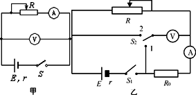 在“測(cè)電池的電動(dòng)勢(shì)和內(nèi)阻”的實(shí)驗(yàn)中,測(cè)量對(duì)象為1節(jié)新的干電池.某同學(xué)用圖甲所示電路測(cè)量時(shí),在較大范圍內(nèi)調(diào)節(jié)滑動(dòng)變阻器,發(fā)現(xiàn)電壓表讀數(shù)變化不明顯,估計(jì)是因?yàn)殡姵剌^新造成.為了提高實(shí)驗(yàn)精度,該同學(xué)采用圖乙所示電路.實(shí)驗(yàn)室提供的器材有:量程3 V的電壓表;量程0.6 A的電流表(具有一定內(nèi)阻);定值電阻R0(阻值未知,約幾歐姆);滑動(dòng)變阻器R1(0~10 Ω),滑動(dòng)變阻器R2(0~200 Ω);單刀單擲開關(guān)S1、單刀雙擲開關(guān)S2,導(dǎo)線若干.