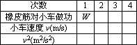 (2)當我們分別用同樣的橡皮筋1條、2條、3條……并起來進行第1次、第2次、第3次……實驗時,每次實驗中橡皮筋拉伸的長度都保持一致,我們把第1次實驗時橡皮筋對小車做的功記為W.