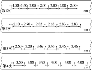 (3)由于橡皮筋對小車做功而使小車獲得的速度可以由打點計時器和紙帶測出,如下圖所示是其中四次實驗打出的部分紙帶.