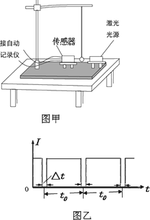 在“用單擺測定重力加速度”實驗中,若均勻小球在垂直紙面的平面內(nèi)做小幅度的擺動,若懸點到小球頂點的繩長L,小球直徑為d,將激光器與傳感器左右對準,分別置于擺球的平衡位置兩側(cè),激光器連續(xù)向左發(fā)射激光束.在擺球擺動過程中,當擺球經(jīng)過激光器與傳感器之間時,傳感器接收不到激光信號.將其輸入計算機,經(jīng)處理后畫出相應(yīng)圖線.圖甲為該裝置示意圖,圖乙為所接收的光信號I隨時間t變化的圖線,橫坐標表示時間,縱坐標表示接收到的激光信號強度,則該單擺的振動周期為________.若保持懸點到小球頂點的繩長L不變,改用直徑2d的另一均勻小球進行實驗,則圖中的t0將________(填“變大”、“不變”或“變小”).則當?shù)氐闹亓铀俣却笮〉挠嬎愎?I>g=________(用上述已知的物理量表示).