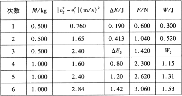 是兩個速度傳感器記錄的速度的平方差,可以據(jù)此計算出M的動能變化量ΔE.F是拉力傳感器受到的拉力,W是F在A、B間所做的功.