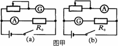(1)某同學(xué)發(fā)現(xiàn)上述器材中雖然沒(méi)有電壓表,但給出了兩個(gè)電流表,于是他設(shè)計(jì)了如圖所示中甲的(a)、(b)兩個(gè)參考實(shí)驗(yàn)電路,其中合理的是________圖所示的電路;在該電路中,為了操作方便且能準(zhǔn)確地進(jìn)行測(cè)量,滑動(dòng)變阻器應(yīng)選________(填寫(xiě)器材前的字母代號(hào)).