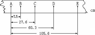 在“研究勻變速直線運(yùn)動(dòng)”的實(shí)驗(yàn)中,如圖所示是一次記錄小車運(yùn)動(dòng)情況的紙帶,圖中A、B、C、D、E為相鄰的計(jì)數(shù)點(diǎn),相鄰計(jì)數(shù)點(diǎn)間還有四個(gè)點(diǎn)未畫(huà)出.打點(diǎn)計(jì)時(shí)器的電源頻率為50 Hz.