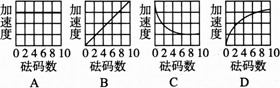 (3)另一個(gè)同學(xué)在完成同樣的實(shí)驗(yàn)時(shí),在細(xì)線末端逐次增加一個(gè)質(zhì)量m0=50 g的鉤碼,然后利用紙帶測(cè)出每次小車運(yùn)動(dòng)的加速度.如果小車質(zhì)量M=100 g,細(xì)線質(zhì)量忽略不計(jì),那么下圖中最適合用來(lái)描述小車加速度隨著所掛鉤碼個(gè)數(shù)而變化的圖線是________.