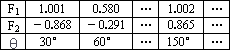 角重復(fù)上述實(shí)驗(yàn)步驟,得到表格: