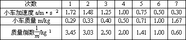 (2)在“探究加速度a與質(zhì)量m的關(guān)系”時(shí),保持砂和小桶質(zhì)量不變,改變小車質(zhì)量m,分別得到小車加速度a與質(zhì)量m的相關(guān)數(shù)據(jù)如下表: