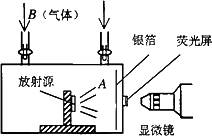 1919年盧瑟福通過如圖所示的實(shí)驗(yàn)裝置,第一次完成了原子核的人工轉(zhuǎn)變,并由此發(fā)現(xiàn)________.圖中A為放射源發(fā)出的________粒子,B為________氣.完成該實(shí)驗(yàn)的下列核反應(yīng)方程________.