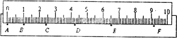 在做“研究勻變速直線運(yùn)動(dòng)”的實(shí)驗(yàn)時(shí),某同學(xué)得到一條用打點(diǎn)計(jì)時(shí)器打下的紙帶,并在其上取了A、B、C、D、E、F等6個(gè)計(jì)數(shù)點(diǎn)(每相鄰兩個(gè)計(jì)數(shù)點(diǎn)間還有4個(gè)計(jì)時(shí)點(diǎn),本圖中沒有畫出)打點(diǎn)計(jì)時(shí)器接的是220 V、50 Hz的交變電流.他把一把毫米刻度尺放在紙帶上,其零刻度和計(jì)數(shù)點(diǎn)A對(duì)齊.